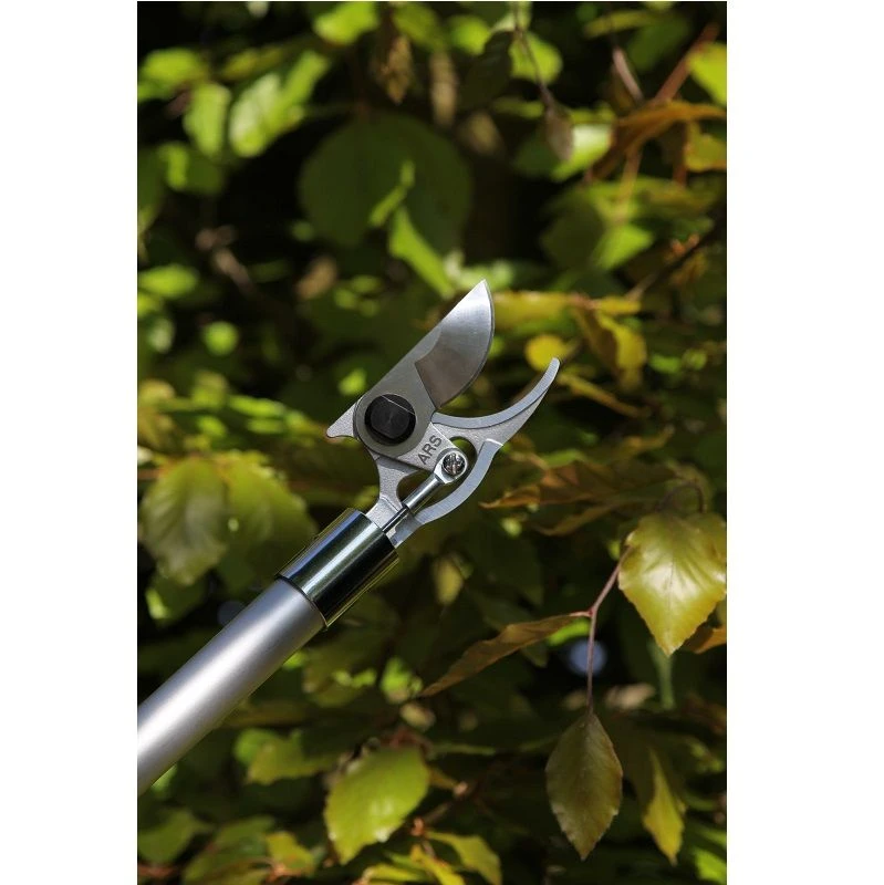 Langarm snoeischaar met lichtgewicht, aluminium steel. Het mes is vervaardigd uit gehard, verchroomd staal en is daardoor extra sterk en bestand tegen roest. Het handvat is 180° roteerbaar en kan zodoende ook de takken in een moeilijke hoek knippen. Met extra sterk mes voor extra kracht.