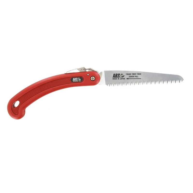 De inklapbare snoeizaag ARS210DX is spits toelopend, licht gebogen en voorzien van het unieke gepatenteerd zaagblad van 16.5cm. Snel en makkelijk zagen kost minder moeite met deze scherpe tanden en de wijze waarop deze zijn geplaatst. Het blad is vervaardigd uit gehard verchroomd staal en is daardoor extra sterk, bestand tegen roest en makkelijk te onderhouden. Voorzien van een rood kunststof handgreep en een veiligheidssluiting voor zowel gesloten als geopende stand.