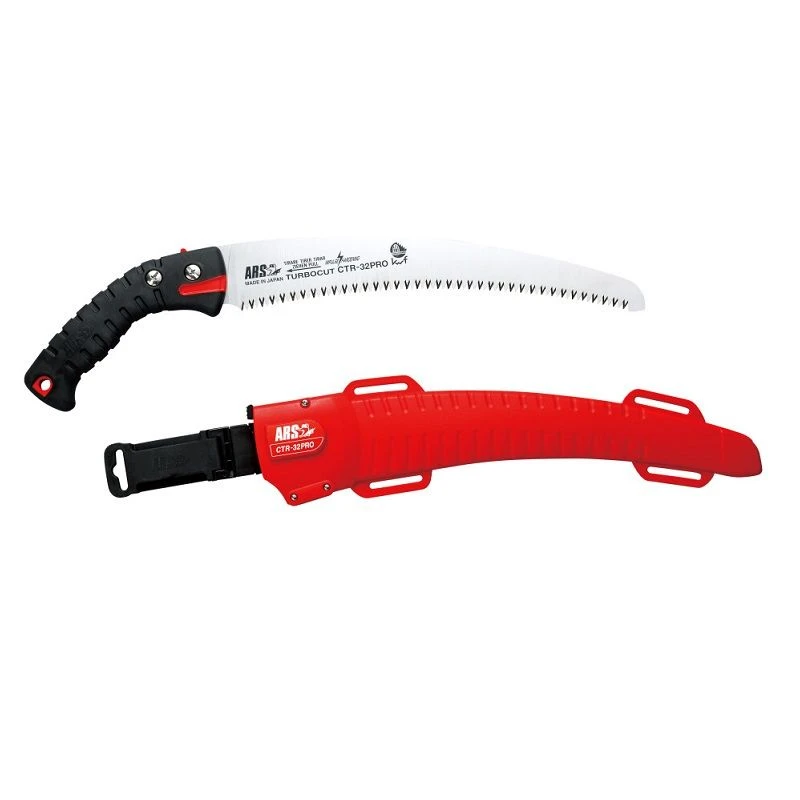 Professionele snoeizaag inclusief holster. De zaag is spits toelopend met een gebogen zaagblad en is voorzien van impuls geharde tandzetting d.m.v de turbocut tandzetting kost het zagen veel minder moeite en toch behoud het haar unieke elasticiteit. Deze impuls hardening garandeerd tevens een lange levensduur. Voorzien van ergonomische, rode, met soft grip bekleden handgreep. Standaard geleverd met holster inclusief riembevestiging. Tevens is het mogelijk d.m.v de PRO-ST de holster o.a het klimmen op de kuit te bevestigen.