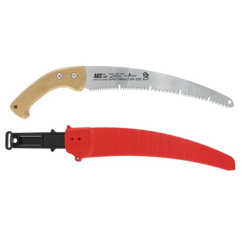De professionele Snoeizaag UV-323E-W is een snoeizaag 320 mm + holster met houten handgreep. Een spits toelopende zaag met een lichtgebogen zaagblad. Het zagen kost veel minder moeite door de turbocut tandzetting.