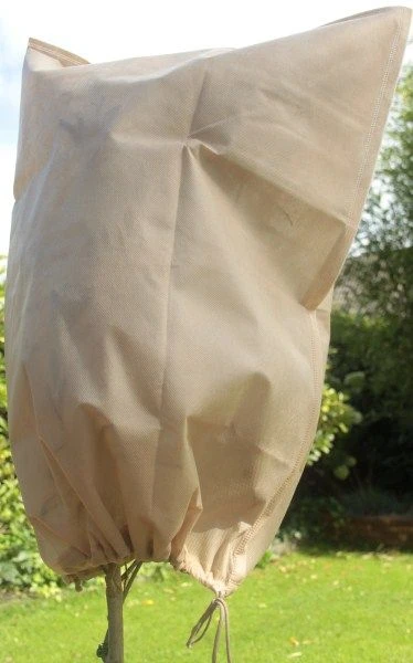 Winterbeschermhoes voor kuip- en of andere gevoelige planten tegen weersinvloeden zoals vorst, harde wind, regen, hagel en uitdroging. Veel planten kunnen niet goed tegen de winterse kou en andere winterse omstandigheden zoals hagel of harde wind. Deze hoes beschermt de planten op een zeer eenvoudige manier. Het beigekleurige dikke vlies is aan de onderkant voorzien van een trekkoord en kan eenvoudig over de potplant heen getrokken worden en om de pot bevestigd worden. Deze hoezen zijn gemaakt van een zachte polypropyleen vlies en beschadigen de plant dus niet.