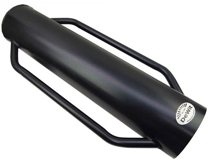 Met het zware gewicht kan de paal in het gat gestampt worden.Â