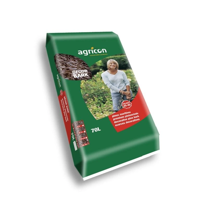 Een natuurproduct uit Franse decoratieve pijnboomschors en is op basis van zijn roodachtige kleur bijzonder goed geschikt voor de decoratieve vormgeving van tuinen. De boomschors laat struiken en bloemperken werkelijk tot hun recht komen. Het beschermt de grond tegen uitdroging en hoge temperatuurschommelingen. Daardoor wordt de lucht- en waterhuishouding geoptimaliseerd en het bodemleven bevorderd.