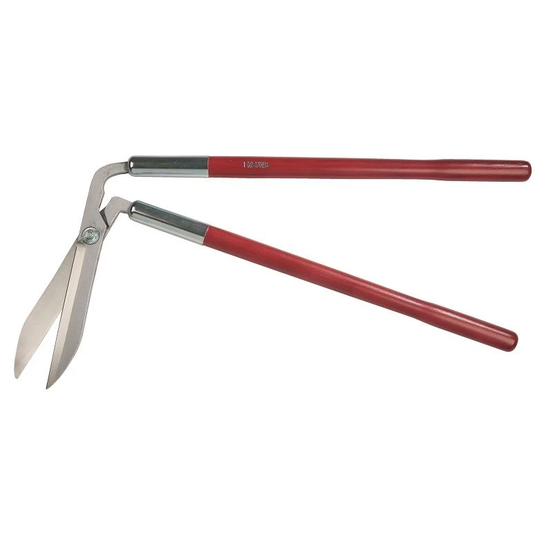 Een verticaal snijdende Graskantschaar met lange houten grepen en gesmede hardverchroomde messen. Deze schaar is zelfslijpend. De totale lengte van deze graskantsschaar is 95 cm.
