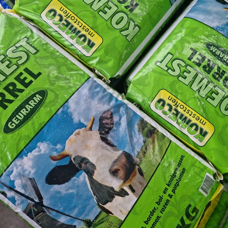 Gedroogde koemestkorrel, geurarm! Organisch bodemverbeterend middel voor gazons, siertuin, border, bol- en knolgewassen, moestuin, fruitbomen, rozen & potplanten.