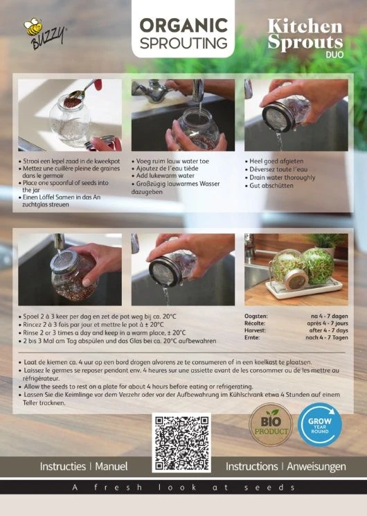 Eenvoudig spruit- en kiemgroente kweken in decoratieve glazen potten met RVS rooster, inclusief 2 zakjes Spruitgroente