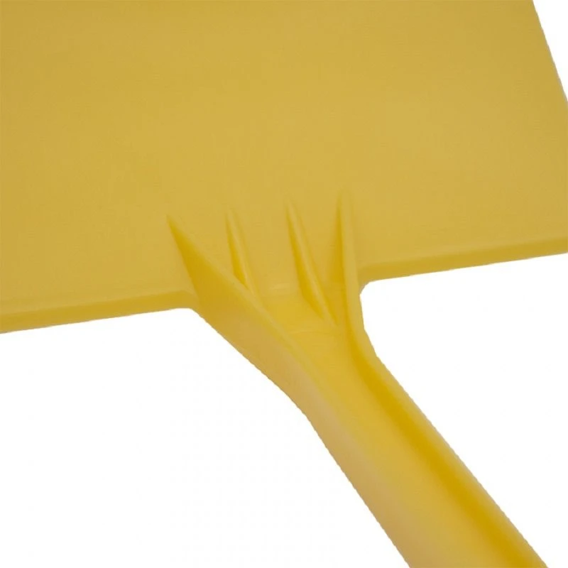 Met ribben aan de achterzijde bij de overgang van de plaat naar de stok zorgt voor extra stevigheid.