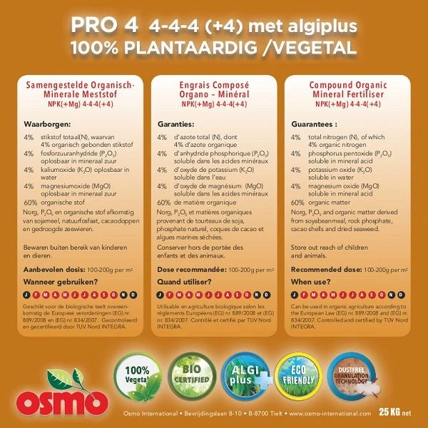 PRO 4 BIO NPK 4-4-4(+4)MgO + Zeewier OSMO 25kg