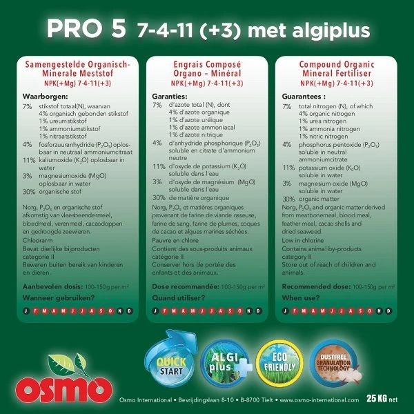 OSMO PRO 5 NPK 7-4-11(+3)MgO + ZeewierÂ