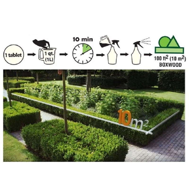 10 bruistabletten voor 100m² buxus.