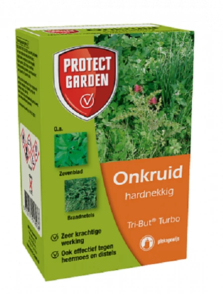 Bayer Tri But Turbo is een onkruid middel met een bladsystemische werking en is werkzaam tegen hardnekkig onkruid, zoals: brandnetels, distels, zevenblad, heermoes, bosjes en struiken.